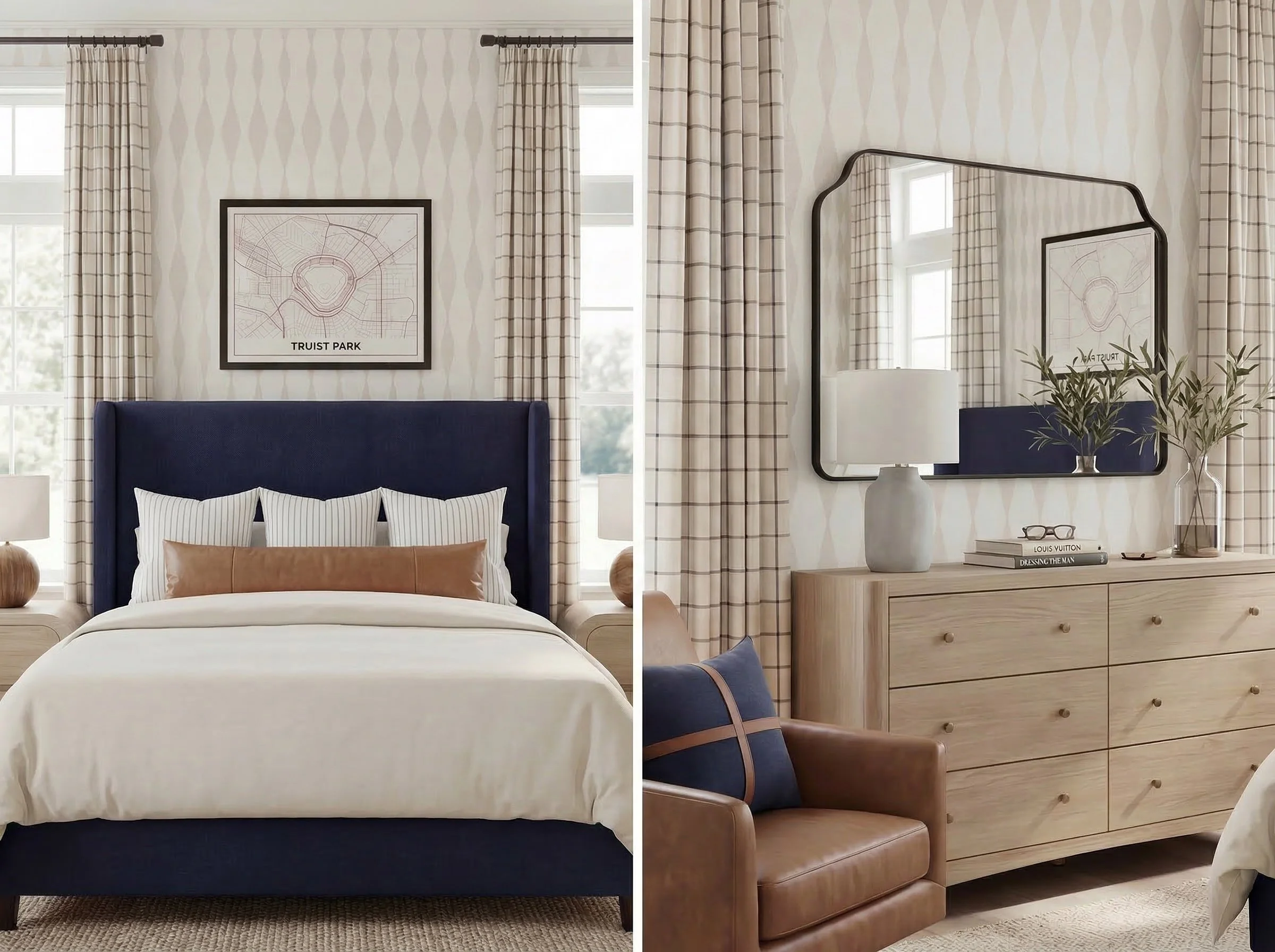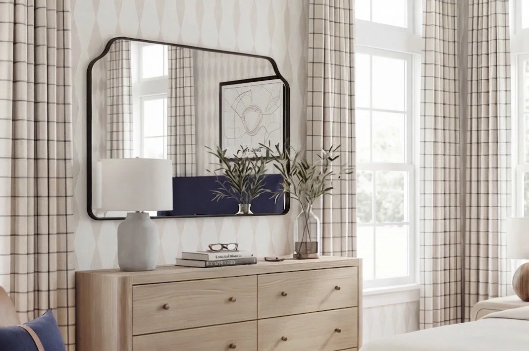 Finishing touches matter. The mirror and pillows I sourced from Amazon reflect the same balanced softness styled in this concept. Layered textiles — especially when paired with properly sized inserts — bring warmth without feeling fussy.