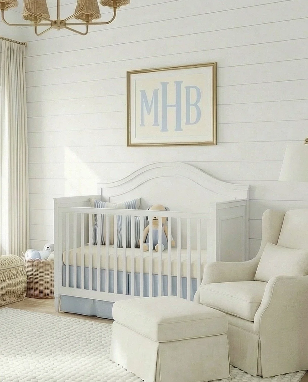 Choosing decor with a timeless look means the nursery won’t feel like it needs to be completely redesigned in a few years. Pieces like monogram art, soft patterned rugs, and simple framed prints can move seamlessly from nursery to toddler room and beyond, creating a space that feels collected over time rather than decorated all at once.