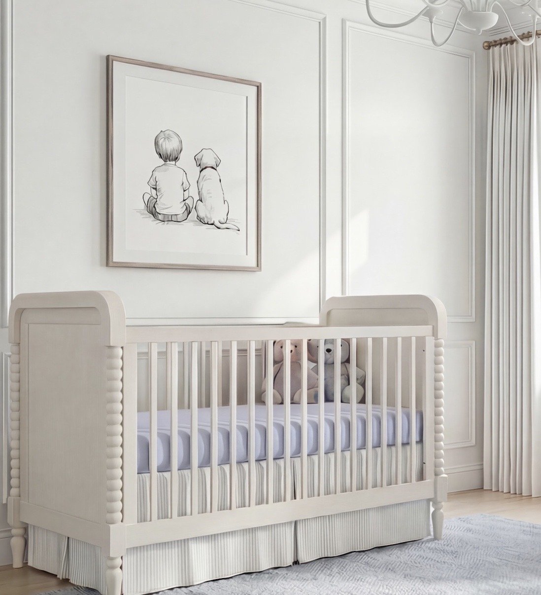 Nursery art doesn’t have to feel overly playful to be charming. A soft pencil-style illustration like this adds a sentimental and timeless feel that works beautifully in a classic nursery.