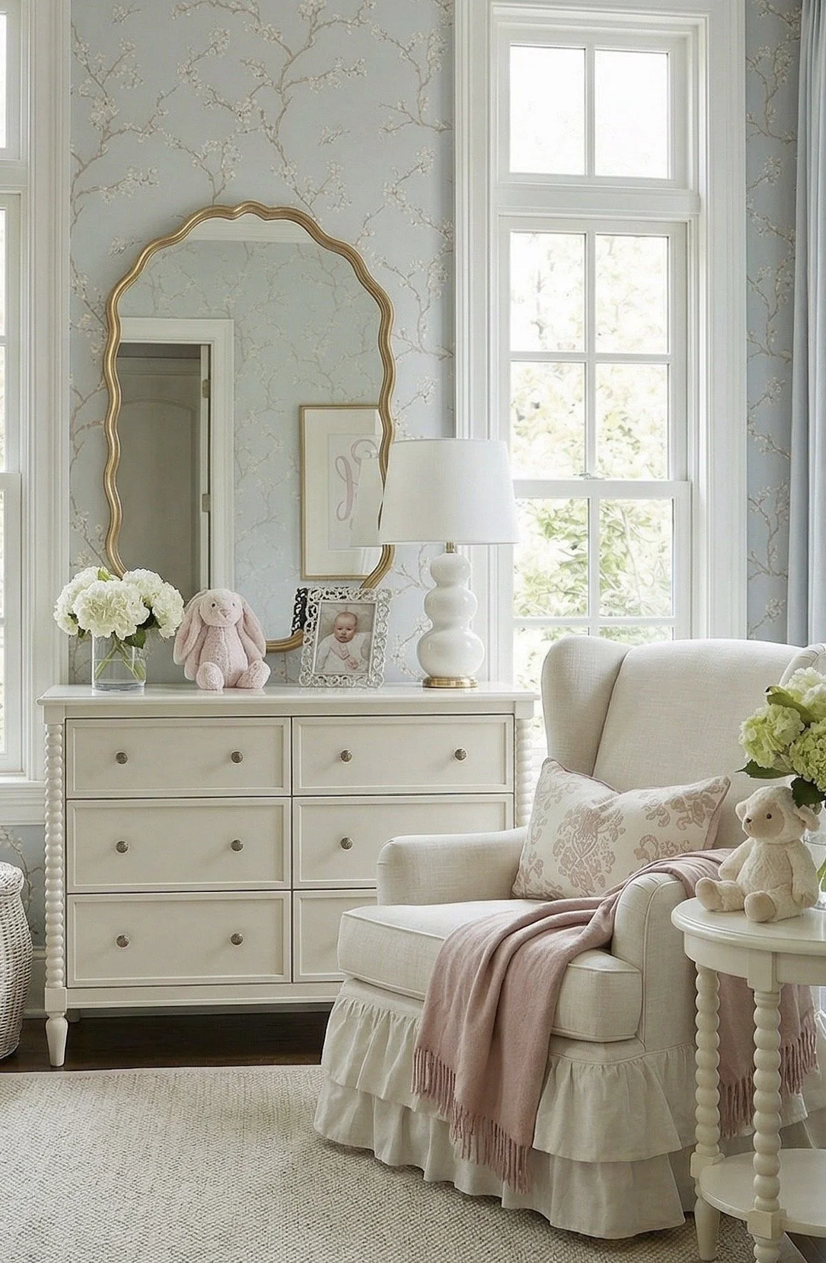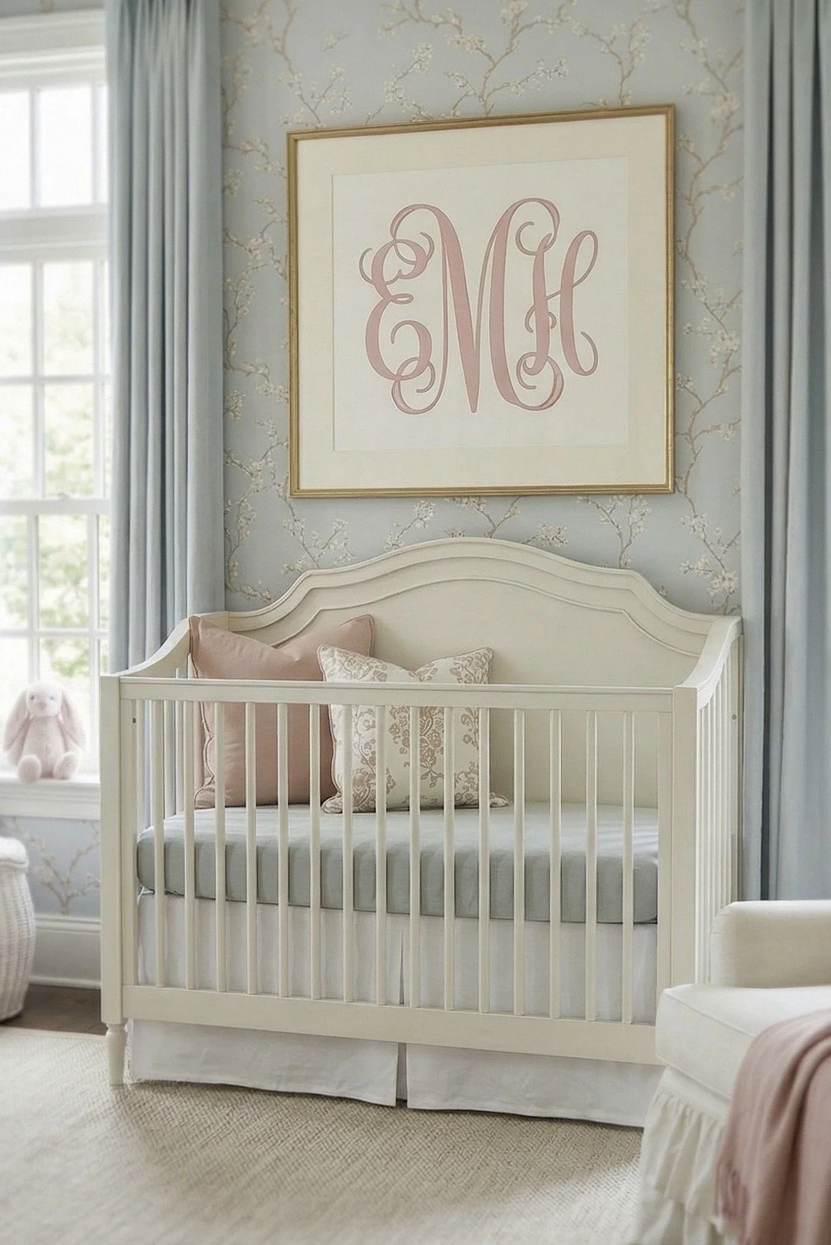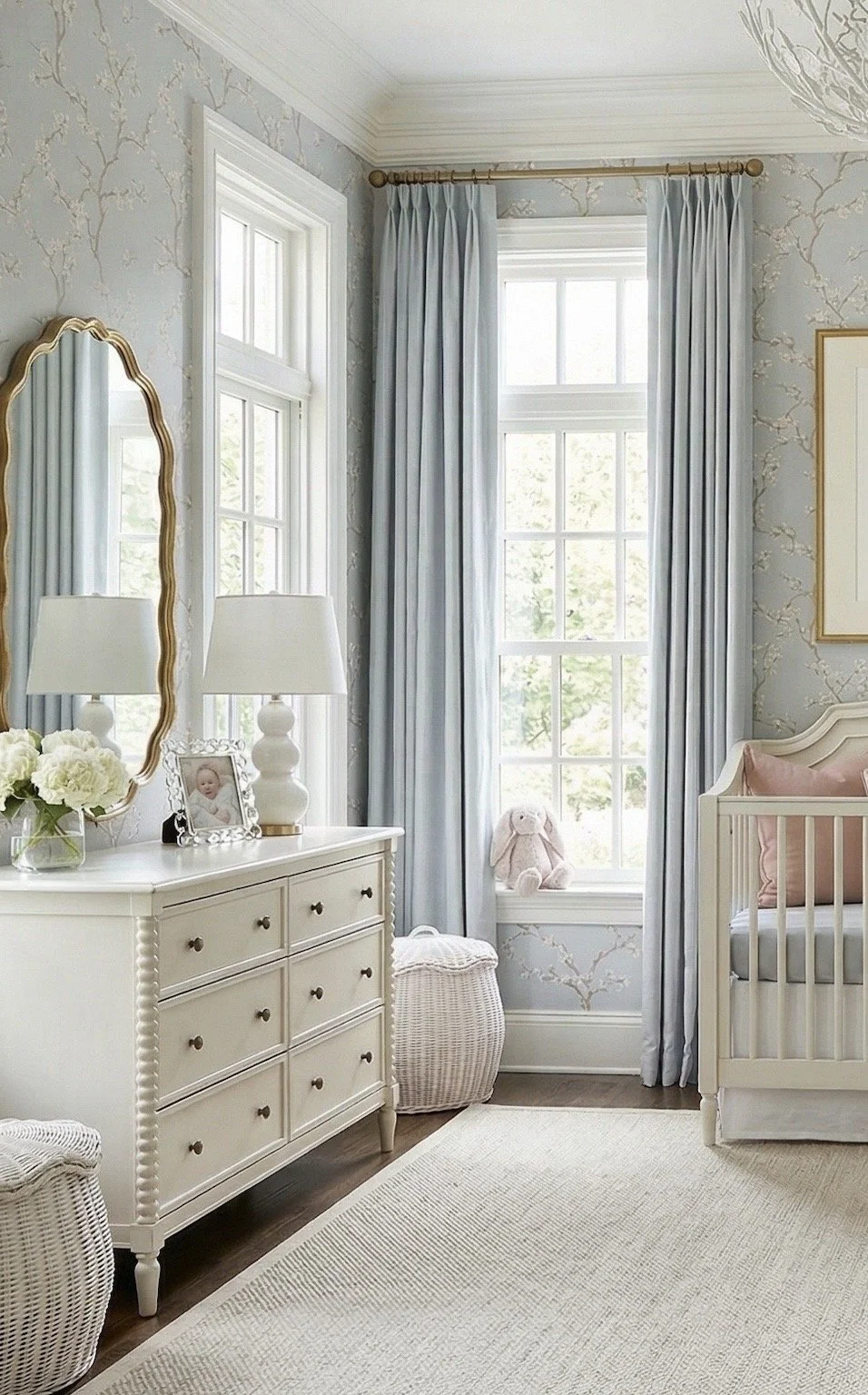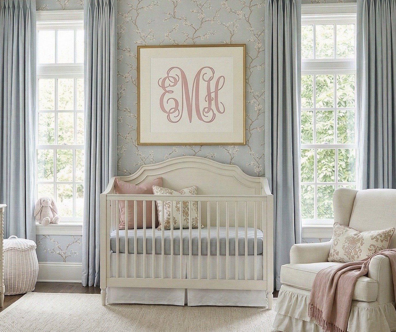 A Classic Baby Girl Nursery in Soft Blue and Blush Tones