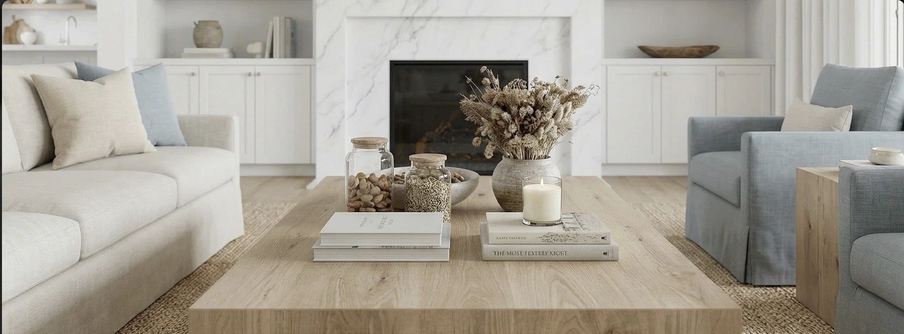 A neutral-toned book with a clean cover adds height and structure to your coffee table styling while blending seamlessly into the palette. I always use these as a base layer for trays, candles, or decorative objects.