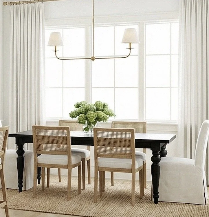 Slipcovered Dining End Chairs (Amazon) A softer, more tailored contrast to the woven chairs—these slipcovered end chairs bring in that classic, collected look while keeping the space feeling relaxed and comfortable.