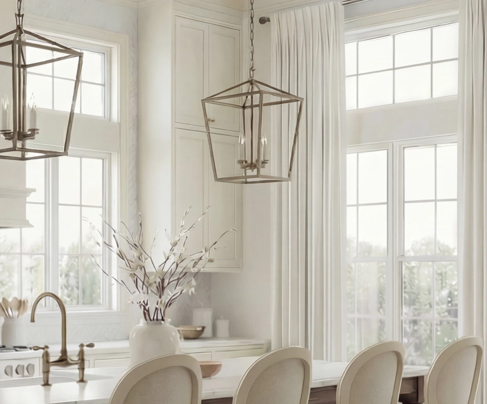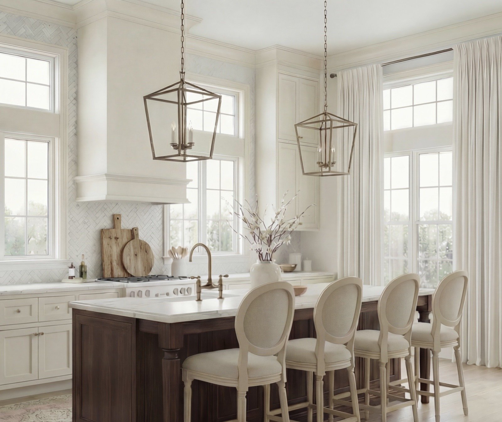 They keep a space feeling bright and open while still bringing warmth that cooler whites can sometimes lack. One detail I particularly love here is that the cabinetry runs all the way to the ceiling — a small decision that instantly elevates the entire kitchen.