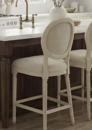 The Amazon finds I linked have a classic silhouette with upholstered backs that instantly soften the space. I love mixing high and low pieces in a room like this — investing in foundational elements like cabinetry and countertops while saving on accents and seating where possible.