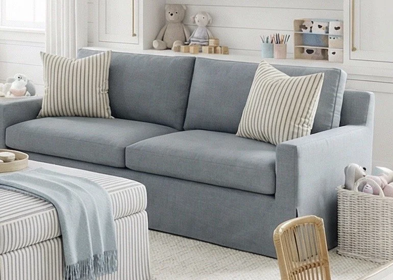 Instead of traditional playroom furniture, this space uses full-size sofas, which instantly makes the room feel more elevated. I’ve linked one I love from Interior Define.
