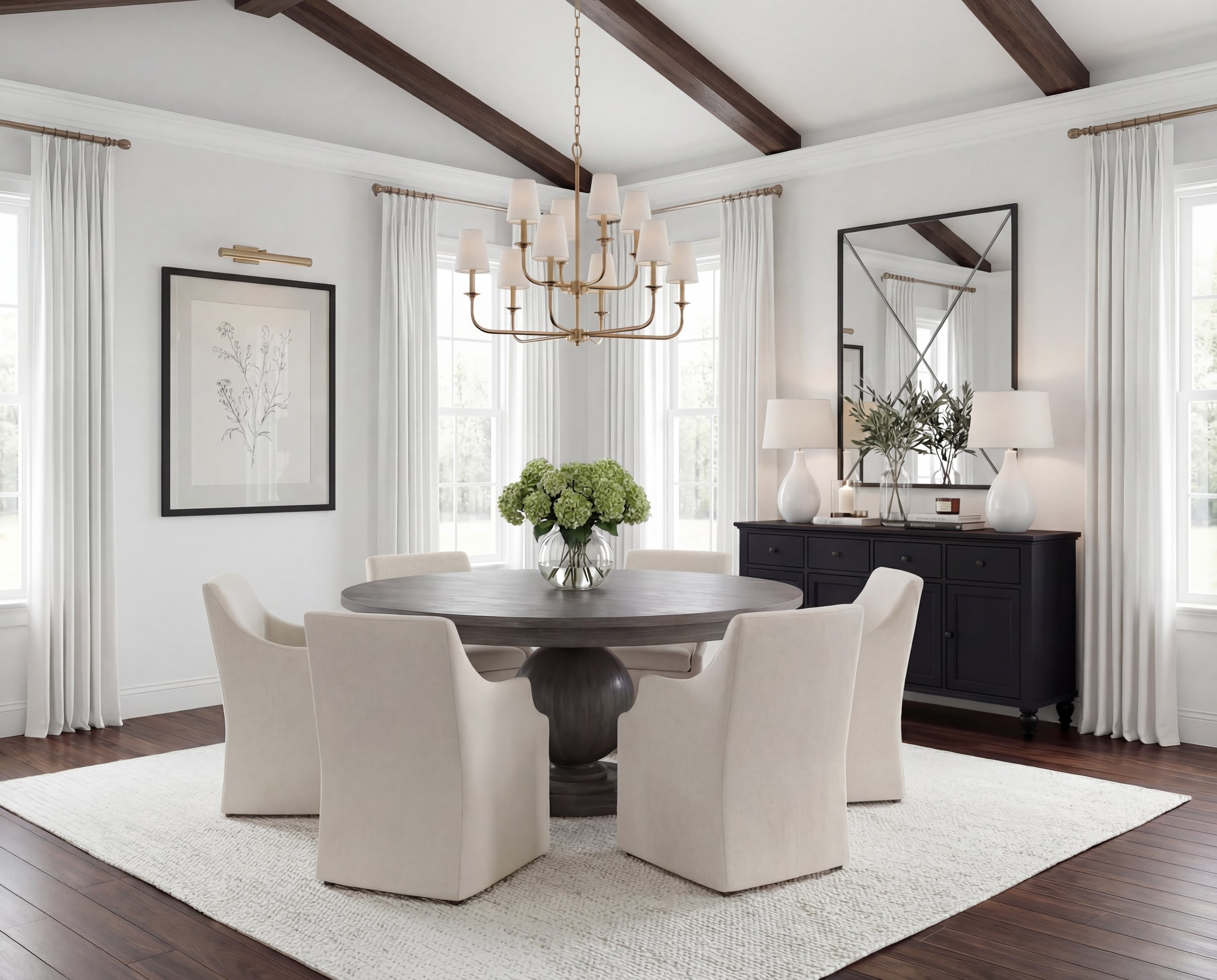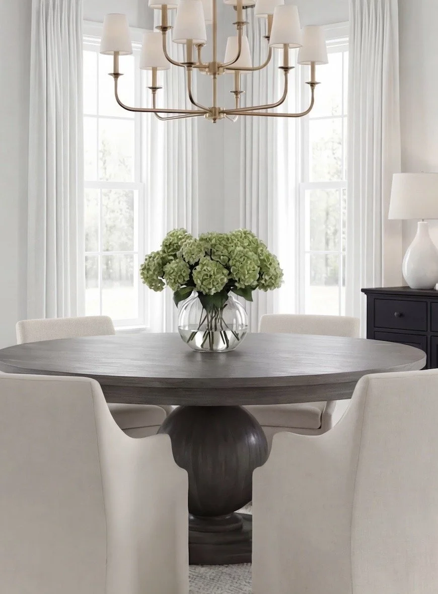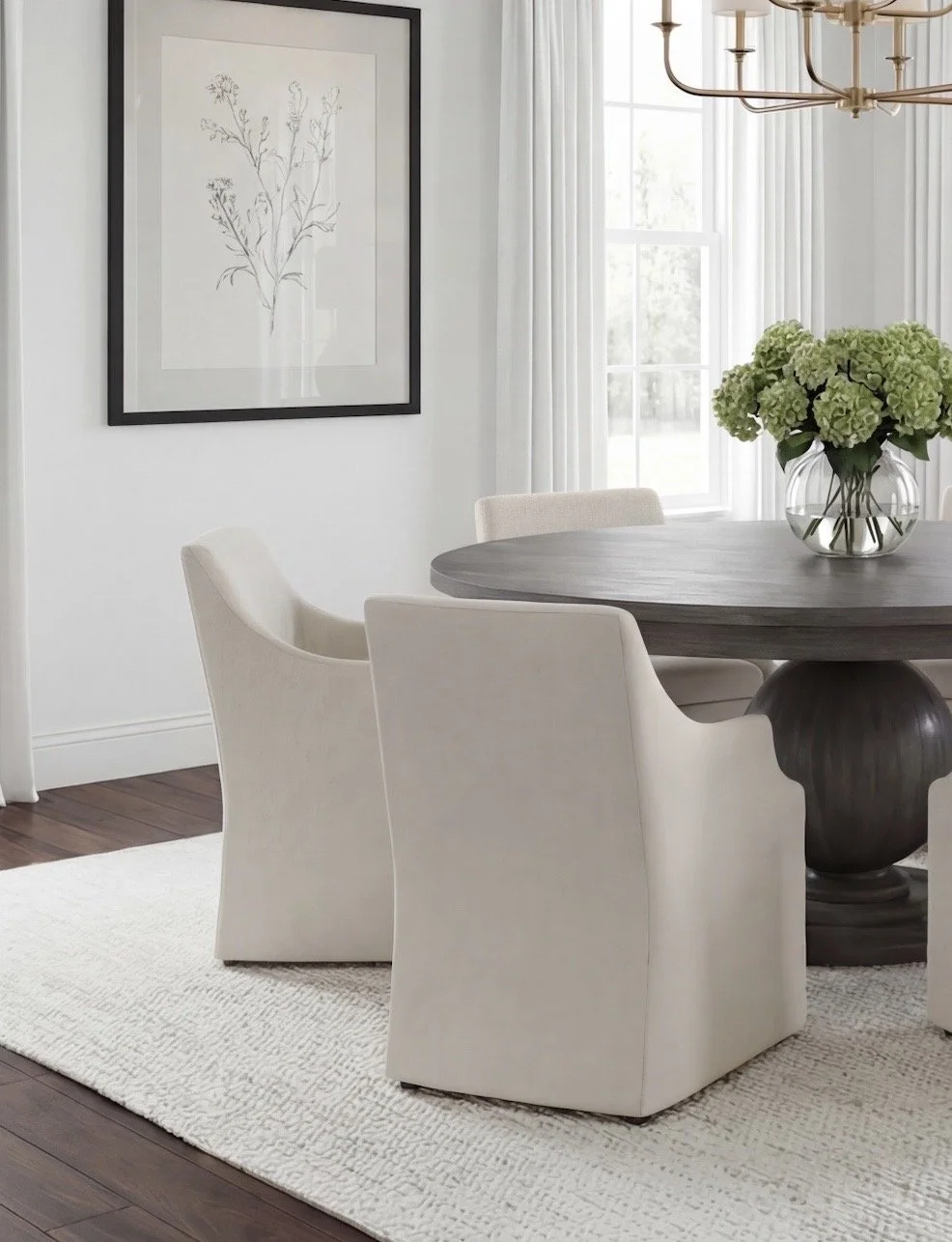 The table in this design is styled as a 60" round, similar to the one I sourced from Wayfair. I will forever be team round table. There’s something about the way everyone faces each other that makes a space feel more connected. It’s cozy, conversational, and perfect for lingering long after dinner is finished.