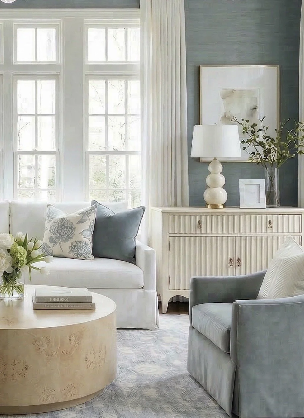 This sitting room is a perfect example of how to create a space that feels both elevated and completely livable. Between the natural light, tailored furnishings, and subtle traditional details, everything about this room feels calm, intentional, and timeless.