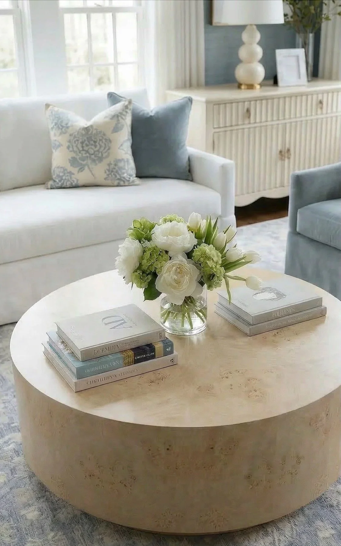 If there’s one thing that always works in a home, it’s a soft blue palette paired with classic, layered neutrals.